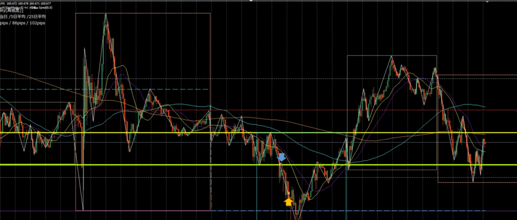 ・水平線(直近安値)ブレイクからの戻し+20MA反発からのショート